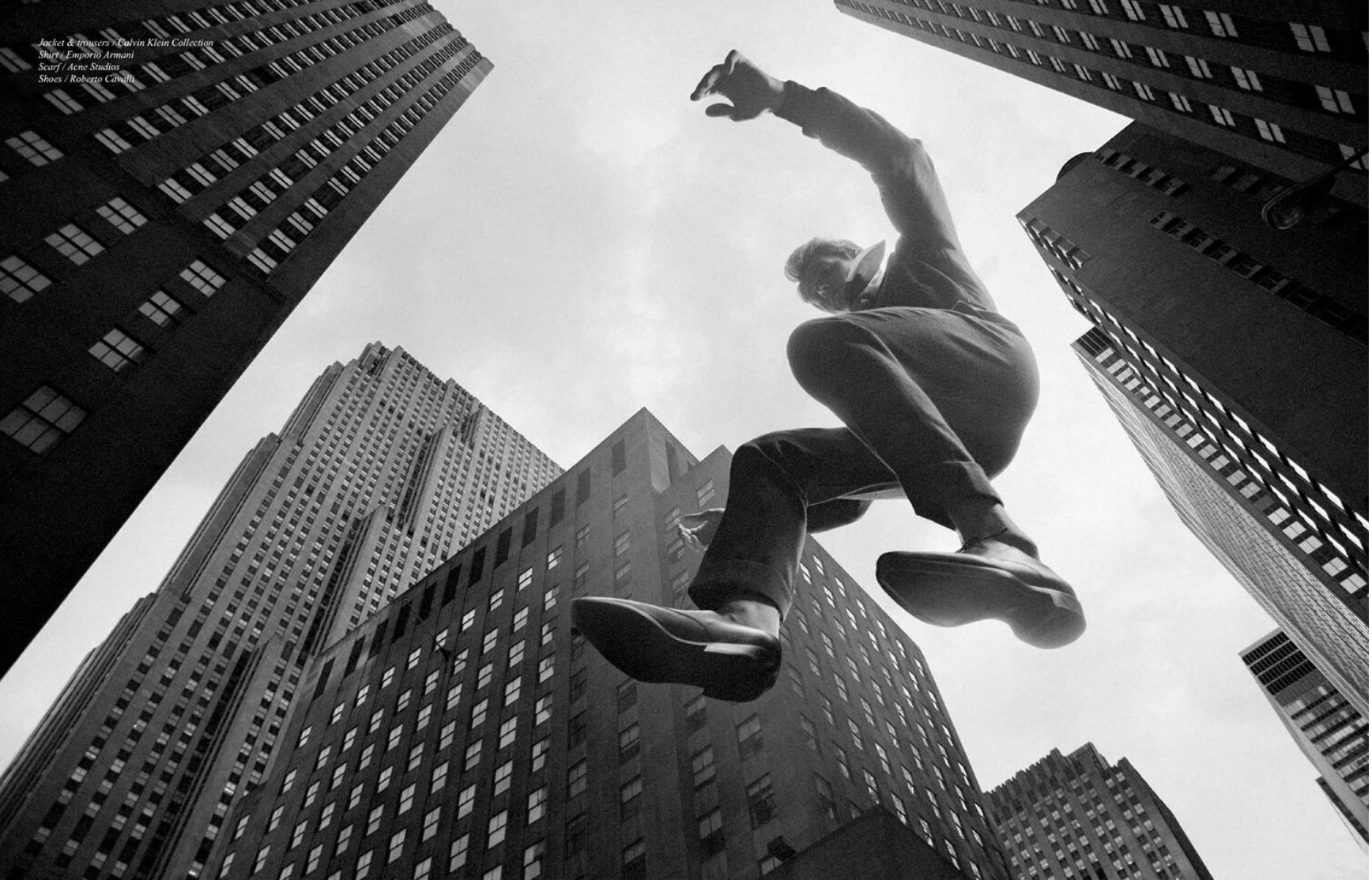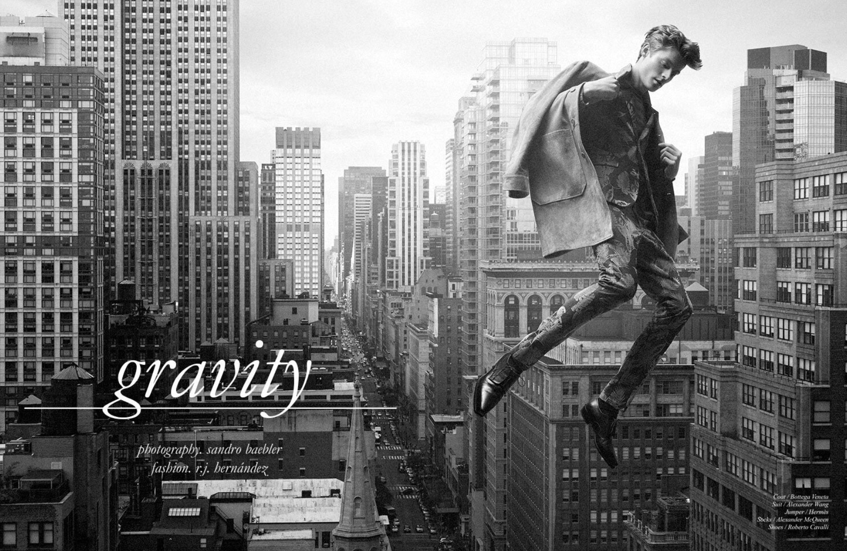 In Gravity, starring top model Janis Ancens, RJ collaborated with renowned Swiss photographer Sandro Baebler for an editorial inspired by the impossible architecture of New York City.
