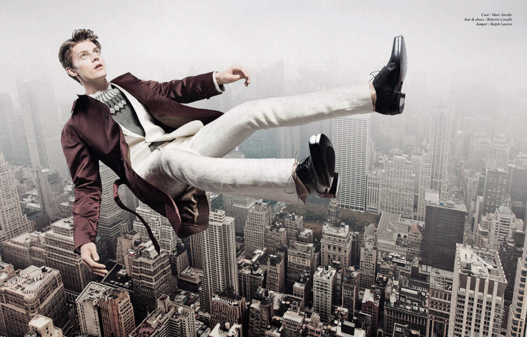 “Sandro came to me with this sublime vision of a man suspended midair, and I kept asking myself—is he ascending or descending? That, to me, is the tension of New York City: one minute you’re flying, the next you’re falling. The city is both a launchpad and an abyss.”